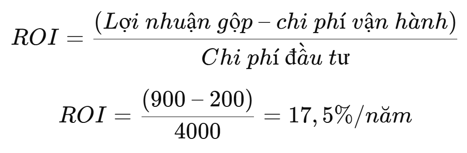 - Chi phí vận hành hàng năm: 200 triệu đồng